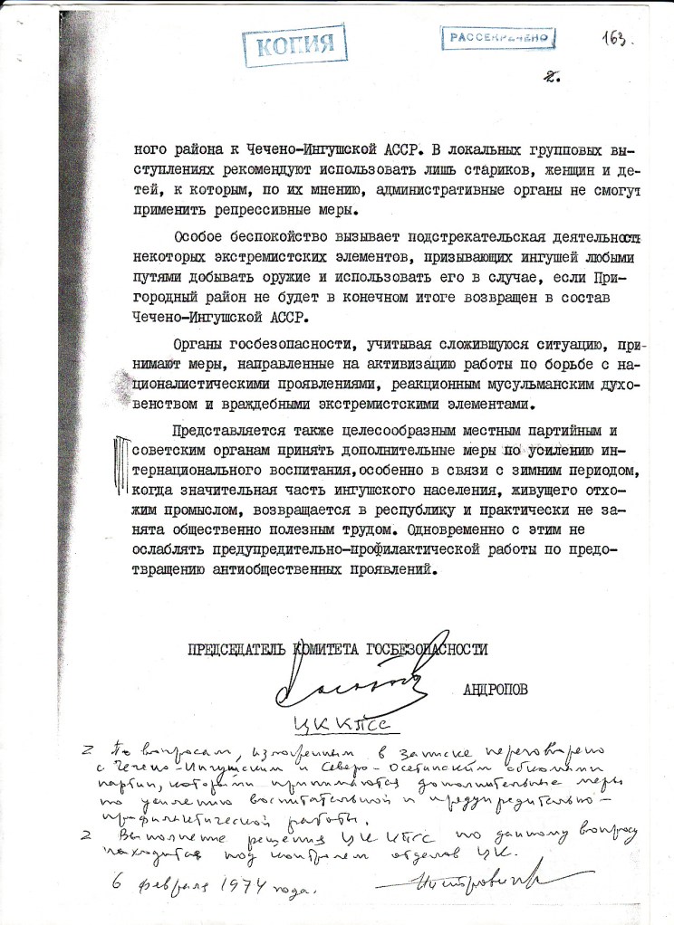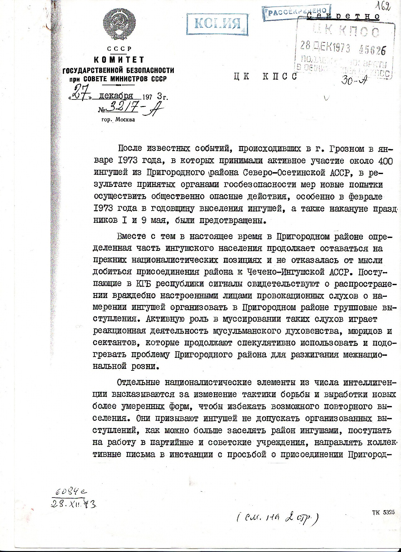 Документ из архива КГБ СССР от 27 декабря 1973 года