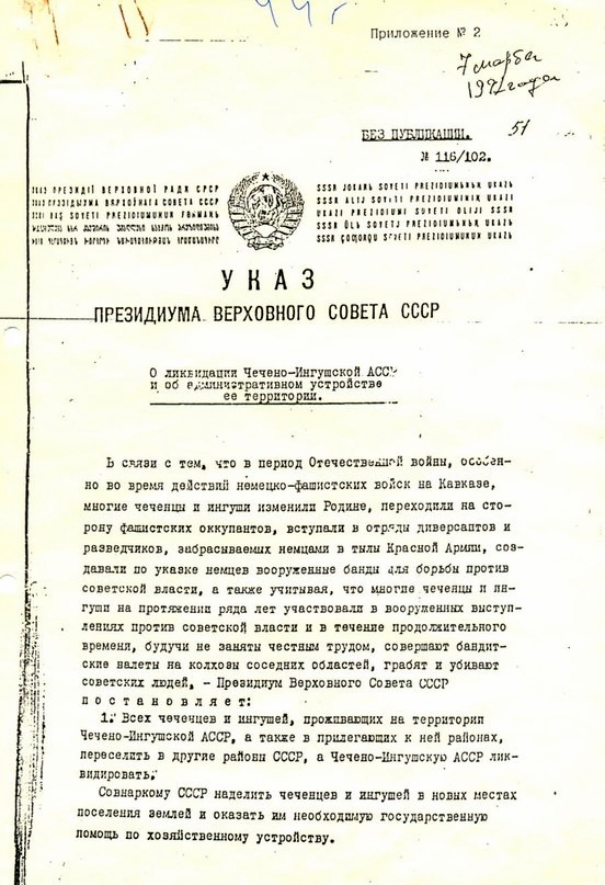Указ Президиума ВС СССР от 7 марта 1944 г. «О ликвидации ЧИАССР и об административном устройстве ее территории»