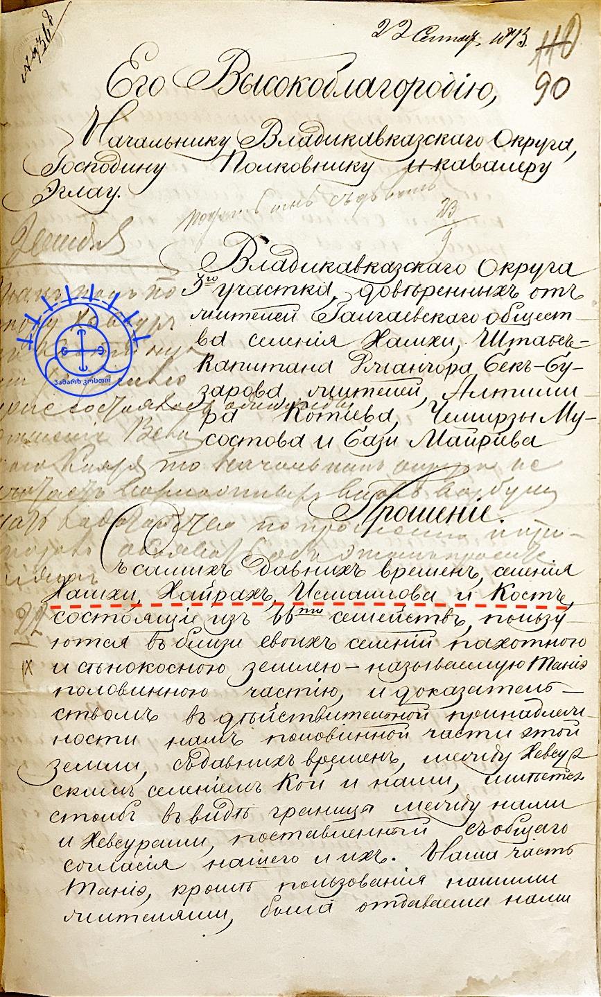 22 Копия резолюции Тифлисского окружного суда от 10 мая 1900 года. Хранится в семье Беслана Котикова, жителя г. Грозного.
