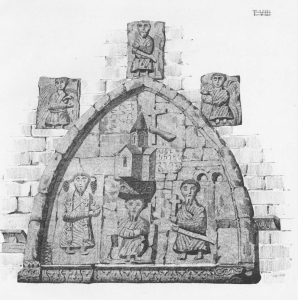 О наличии в храме священных книг упоминали в более ранний период исследователи и путешественники. В течение двух лет Г. Вертепов искал следы этих книг. Наконец, ему удалось найти одного местного ингуша, продавшего ему «за незначительную сумму» пергаментные страницы рукописного псалтыря на старогрузинском языке. Г.Г. Гамбашидзе считает, что манускрипты священнописаний, надписи на стенах и обломках черепиц Тхаба-ерды, надписи на стенах Алби-ерды и эпитафии на некоторых солнечных могильниках- каш, говорят о том, что ингуши эпохи интенсивных религиозных контактов с Грузией (IX-XIIвека) использовали грузинское письмо и что службы в храмах проходили на грузинском языке [11, с. 196]. Тако- го же мнения придерживался и Н. Яковлев. В 1920-х годах он обнаружил на штукатурке арки одного из древних солнечных могильников-каш ущелья Ассы надпись грузинскими буквами, передающую имя местного жителя Энолы и относящуюся к периоду христианства. Ибо рядом с ней был изображен крест грузинского (георгиевского) типа. «Значит, для того, чтобы писать на местном языке на Северном Кавказе применяли грузинский алфавит», заключает Н. Яковлев [20, с. 15]. При некоторых храмах были открыты школы для обучения детей грузинскому языку. После прихода России на Кавказ было запрещено преподавать ингушским детям грузинский язык. В 1927 году Л.П. Семенов, в свою бытность старшего научного сотрудника Научно-исследовательско- го института Ингушетии, передал Н.Я. Марру страницы манускрипта на пергаменте, обнаруженные Г. Вертеповым в 1893 году в Ингушетии. Н.Я. Марр переслал их А.П. Генко для более детального изучения. Форма букв манускрипта позволила А.П. Генко датировать его ХI или ХII веками [12, с. 66]. В настоящее время следы этого манускрипта затерялись. Однако до того, как его отправить Н.Я. Марру, Л.П. Семенов сделал копии трех страниц, переданных им впоследствии грузинской исследовательнице М.А. Шанидзе. Изучив их палеографические и редакционные характеристики, она датировала манускрипт Х веком [4]. Страницы старого грузинского псалтыря, принадлежавшего храму Маго-ерда, были недавно обнаружены Г.Г. Гамбашидзе в Ингушетии, в Назрани, при помощи писателя Б.А. Чахкиева. Один пожилой ингуш по фамилии А. Элжеркиев, у которого находились эти страницы, рассказал им, что он нашел псалтырь в святилище Маго-ерда, покровителя его рода. Его он продал, но оставил себе два листка на память. Текст на этих двух пергаментных листках (15,5 х 7; 14,5 х 7,5), написанный на асомтаврули, располагался в одну колонку. Палеография текста позволила датировать его Х веком. Его каллиграфия была близкой к каллиграфии текста из Тхаба-ерды. Оба манускрипта относились, следовательно, к одному культурному и религиозному центру, к Грузии, перед тем, как оказаться в святилищах Ингушетии [4]. Такое издание псалтырей было развито в Грузии в период деятельности Георгия Мтацминдели или Афонского (1009- 1065 гг.), известного грузинского писателя, историка и религиозного деятеля. С ХI века, как считают, этот псалтырь стал чем-то вроде Вульгаты. О времени начала христианизации ингушей Первыми ингушскими обществами, столкнувшимися с христианством, были предки г1алг1аев (Gargars), проживавшие в первые века н.э. на правом берегу Куры и в долине реки Каркарчай современной Грузии, а также предки Гелатхой (Gels или Gaels), проживавшие в ту же эпоху на левом бер
