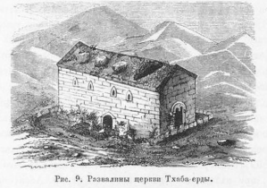 Тхаба-ерда представляет все характеристики местной и грузинской архитектуры. Во время путешествия на Центральный Кавказ Гюльденштедта, Палласа и Клапрота в конце ХVIII и в начале ХIХ века Тхаба-ерда функционировал как языческое святилище. Однако они обнаружили в нем священные книги, иконы и христианские манускрипты, очень почитаемые ингушами. Стены были украшены фреской, различными надписями на христианские темы. Во время пребывания Миллера в Ингушетии в конце ХIХ века, он уже не обнаружил в святилище ни священных книг, ни икон, ни манускриптов. Ему удалось записать со стен только некоторые надписи. От фрески остались только едва заметные следы. В 1969 – 70-х годах параллельно археологическим раскопкам были предприняты работы по реставрации храма Тхаба-ерда. Новые археологические и архитектурные элементы способствовали более точной датировке памятника. Г.Н. Чубинашвили отметил в его конструкции три исторических периода: VIII – IХ, Х – ХI и ХV – ХVI века. Внутри святилища были найдены кончики стрел, копья, бусы из корналина и из стекла, курительные трубки, датирующиеся верхним средневековьем. Раз- битый каменный крест и крестильная купель относятся к периоду его воздвижения – к VIII – IХ векам. Вдоль стен были обнаружены пять захоронений, датируемые IХ – ХII веками. В 1974 году, во время 4-й конфeренции, посвя- щенной памяти историка и археолога Е.И. Крупнова, Г.Г. Гамбашидзе выступил с докладом об исследованиях по храмуТхаба-ерда [5]. На осколках черепицы и архитектурных деталях бордюров крыши им были выявлены изображения крестов и надписи на старогрузинском языке, асомтаврули. На одной из них было написано: «О, Христос, смилуйся над Арсением М.». Г.Г. Гамбашидзе считает, что речь идет об Арсении Мамадмт1арисаиса, грузинском католикосе Арсении II (955-980гг.). Все надписи относятся к X и первой половиной XI века. Эта эпоха совпадает с одним из периодов реставрации храма, предложенных Г.Н. Чубинашвили. Дата XII века была выдвинута историками прошлого, исходившими из легендарных сведений, утверждавших, что храм был построен «во время правления царицы Тaмары» (конец ХII-начало ХIII века). Эпоха правления этой грузинской царицы, имевшее важное значение для истории всего Кавказа, была и до сих пор является точкой отсчета, от которой исходит рассказчик при передаче каких-то далеких событий, часто даже доисторических. Имя католикоса Арсения II, высеченное на одной из стен храма Тхаба-ерда, позволило также Г.Г. Гамбашидзе предположить, что во второй половине X века правители Кахетии – Квирике (929-976 гг.), Давид II (976-1010 гг.) и католикос Арсений II – заложили строительство храма на месте более древнего языческого святилища, посвященного богу вселенной и хозяину Казбека Тха. После ослабления христианства месту и храму было возвращено прежнее название ‘Тхаба-eрда’ («дом бога Тха»). Таргимский храм походил на Тхаба-ерду по своему внутреннему плану. Как и Тхаба-ерда, он имеет аналогии с архитектурой древних грузинских церквей. Внутри храма находилось подземное помещение, предназначенное для приема покойников. Несмотря на простоту архитектуры храма Алби-ерда, археологи относят его к тому же типу, что Тхаба-ерда и Таргимский храм. Он был исследован нашим современником Макшарипом Мужухоевым, датировавшим его ХIII веком [13, с. 183]. По предметам, найденным в храме Алби-ерда, он дейс