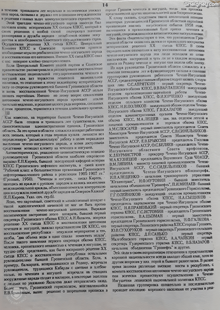 Письмо двадцати шести коммунистов «О нарушениях ленинской национальной политики КПСС в Чечено-Ингушской АССР». (март 1972 г.) » 14