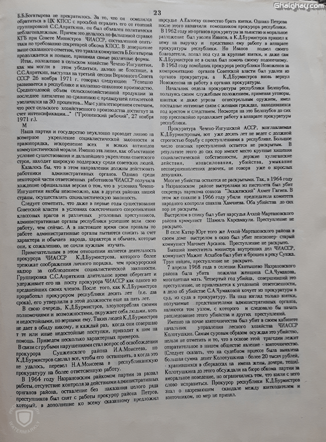 Письмо двадцати шести коммунистов «О нарушениях ленинской национальной политики КПСС в Чечено-Ингушской АССР». (март 1972 г.) » 23