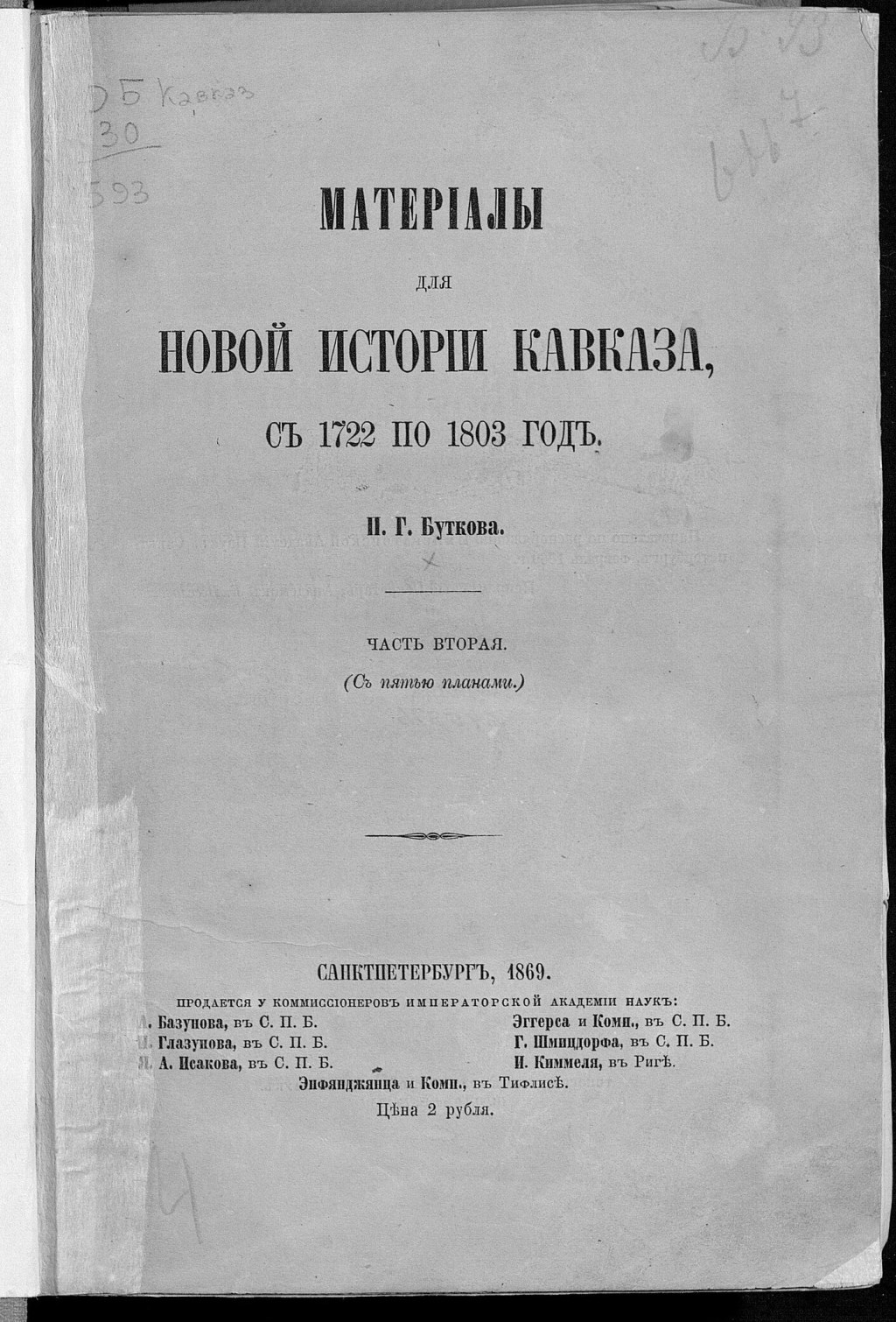 Владикавказ (Материалы для новой истории Кавказа с 1722 по 1803 год)