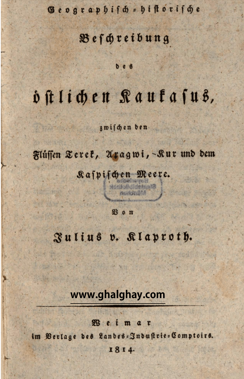 СТРАНА ГIАЛГIАЙ (ГЛИГВА) в Geographisch-historische Beschreibung des östlichen Kaukasus, zwischen den Flüssen Terek, Aragwi, Kur und dem Kaspischen Meere/ Weimar | Erscheinungsjahr: 1814