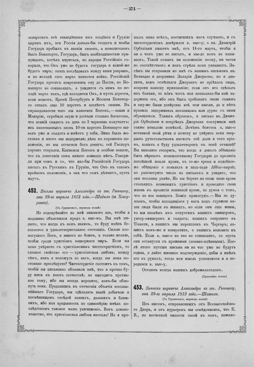 Донесение кн. Цицианова Грузинскому царевичу Александру, от 24-го марта 1813 года // Акты, собранные Кавказской археографической комиссией: Том V. Тифлис, 1873 г.