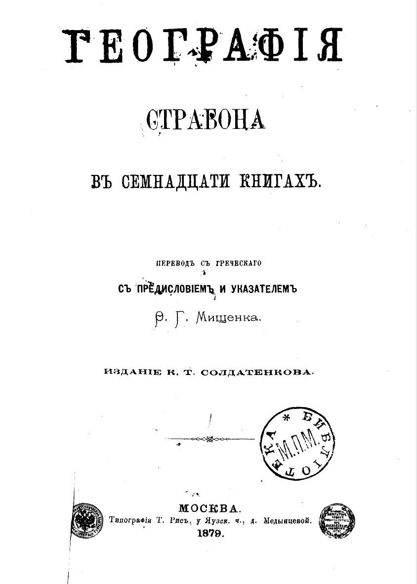 Страбо́н (др.-греч. Στράβων; ок. 64/63 годов до н. э. — ок. 23/24 годов н. э.) — античный историк и географ Римской Греции. Автор «Истории» (не сохранилась) и сохранившейся почти полностью «Географии» в 17 книгах, которая служит лучшим источником для изучения географии древнего мира.