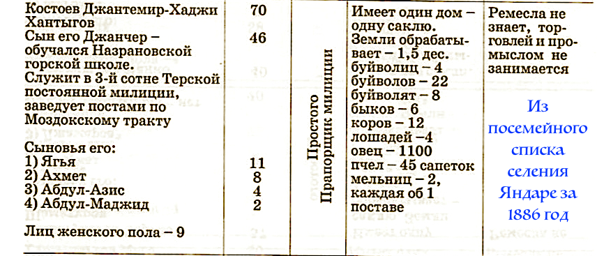 Джантемир Костоев в посемейных списках селения Гамурзиево за 1864 год