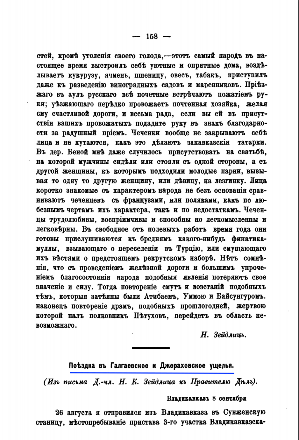 Николай Карлович Зейдлиц (Николай Карл Самуэль фон Зейдлиц, нем. Seidlitz; 1831, Рига — 1907, Тифлис) — российский натуралист, статистик и этнограф. Действительный статский советник (1882), почётный мировой судья; почётный член многих российских и зарубежных научных обществ. Назначенный в 1868 году главным редактором Кавказского статистического комитета[2], он издал серию томов, преимущественно по народонаселению и населённым местам Кавказа. В 1880 году появилась его этнографическая карта Кавказа, помещенная в малом виде и в Petermann’a Geogr. Mitteilung., в которых, как и в издававшихся в Санкт-Петербурге Russische Revue и многих других журналах, помещались его многочисленные труды по кавказоведению. Был действительным членом Кавказского отдела Императорского Русского географического общества и Кавказского общества сельского хозяйства.