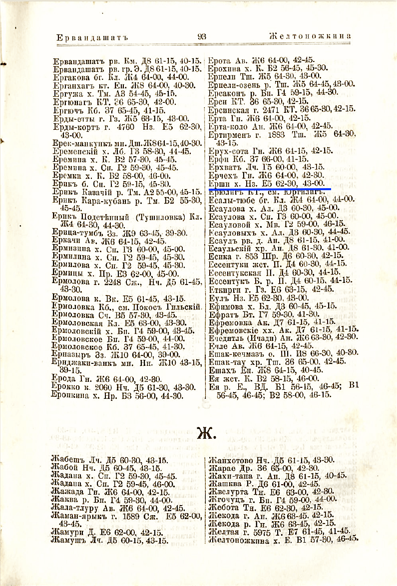 Жители Эгикала живущие на хуторе Эрши из посемейного списка за 1886 год