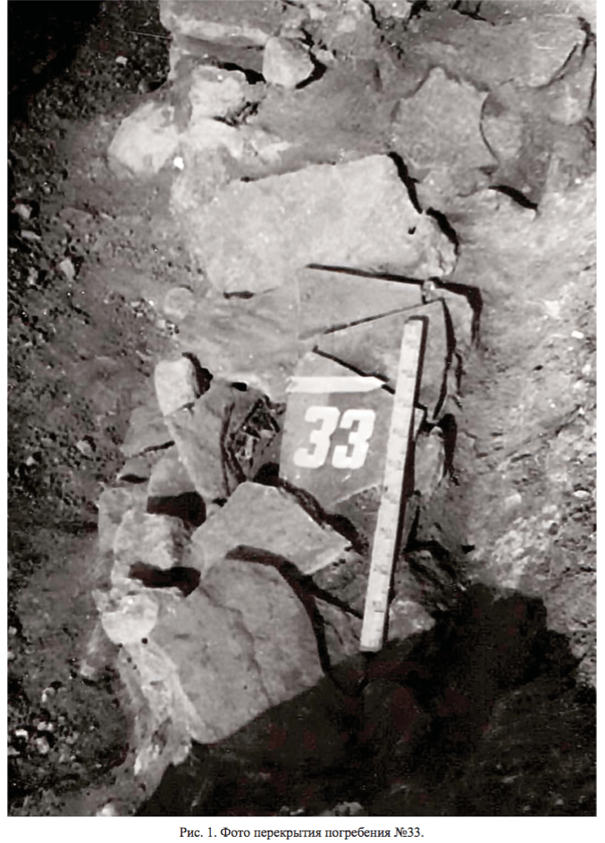 Раскоп ЧИНИИСФ 1987 года (Нарожный, Нарожный., 2015. С. 169–176, рис.1) был отделен от раскопа ЧИГУ небольшой (0,5 м ширины) смежной бровкой. Нумерация погребений на обоих раскопах велась отдельно. По этой причине публикуемое погребение No 33 следует оговаривать тем, что находилось оно в раскопе ЧИНИИСФ.2