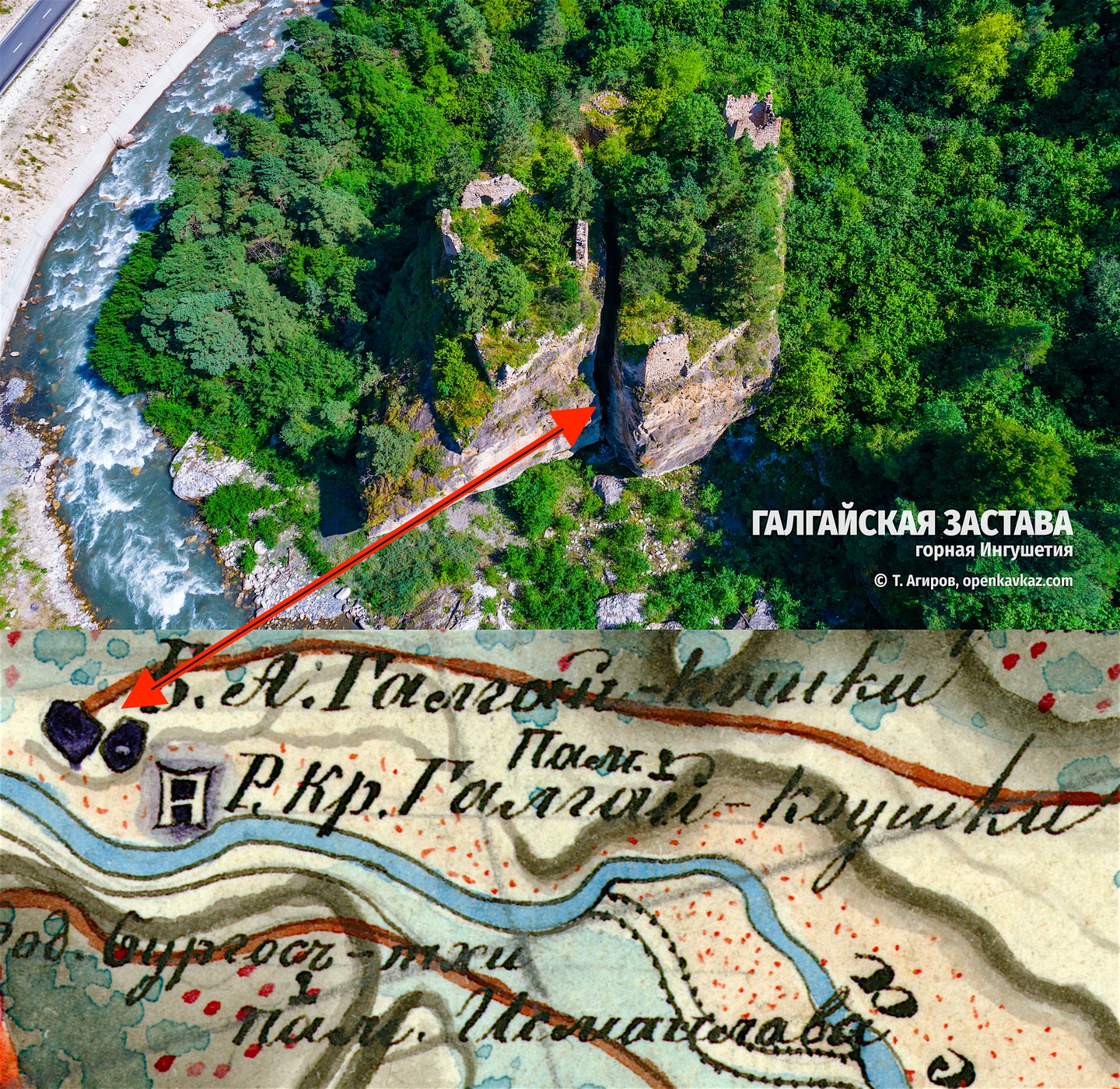 Галгай Коушки (галгайские заставы) на карте Адольфа Берже // «Чечня и Чеченцы», А.П. Берже, Тифлис. 1859 год // источник: Библиотека Президента РФ
