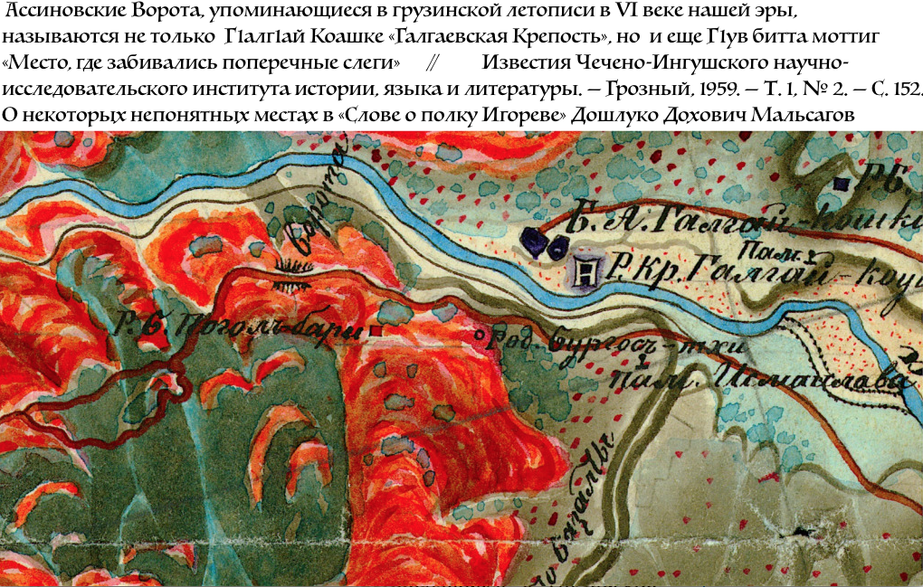 Крепость Г1алг1ай Коашке в работе Дошлуко Доховича Мальсагова// О некоторых непонятных местах в «Слове о полку Игореве» // Известия Чечено-Ингушского научно-исследовательского института истории, языка и литературы. — Грозный, 1959. — Т. 1, № 2. — С. 152. » Снимок экрана 2021-04-02 в 20.38.08