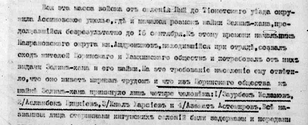 1) Заурбек Исламов, 2) Асламбек Цицкиев, 3) Инал Харсиев и 4) Азамат Астемиров и два брата Даут и Бийсултан (14 лет) Долаковы (из селения Нелх)