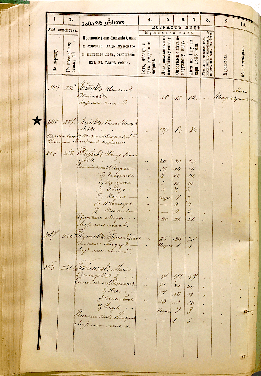 Сыновья Али Мецхалова(Костоева) Темиркъо и Кори (Кхери) в посемейных списках селения Н. Ачалуки за 1886 год