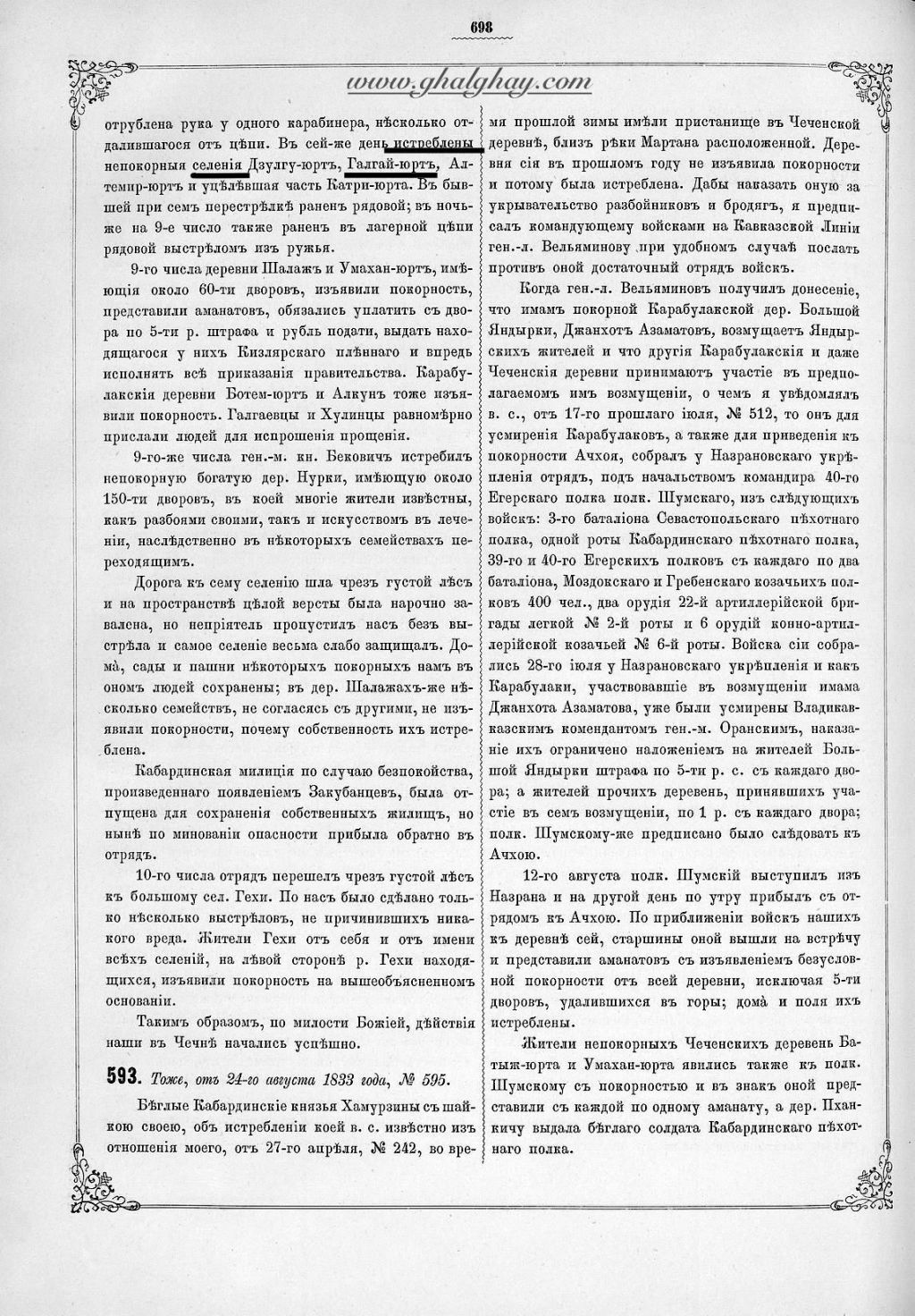 Уничтожение Галгай-юрт в Ачхо-Мартане в августе 1833 года/ АКАК VIII, 1881 г.