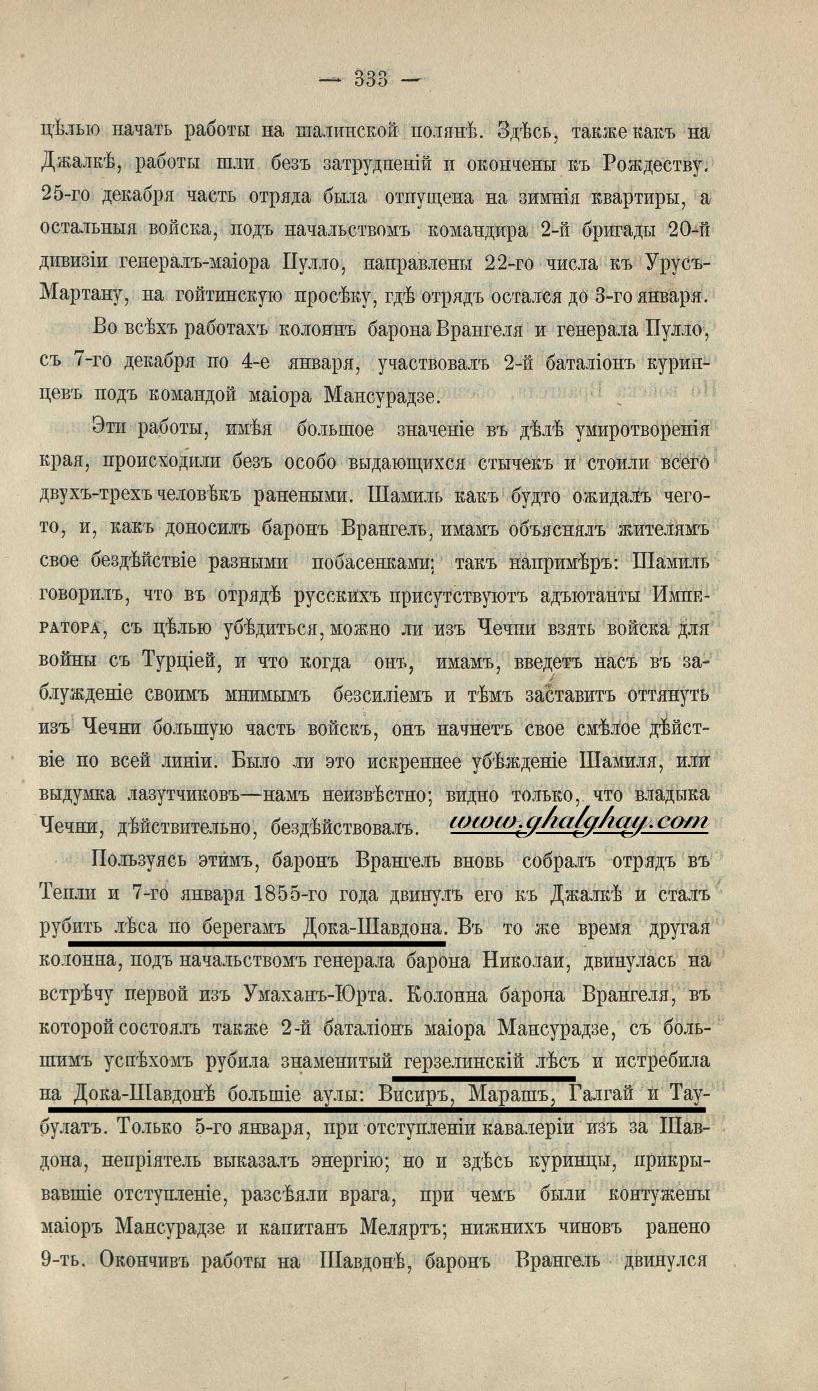 Галгай-юрт в работе «Чечня и чеченцы» / Соч. А.П. Берже, Тифлис, 1859.