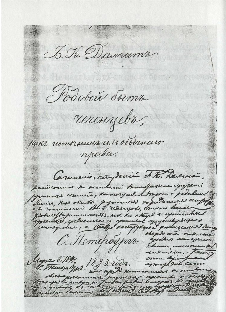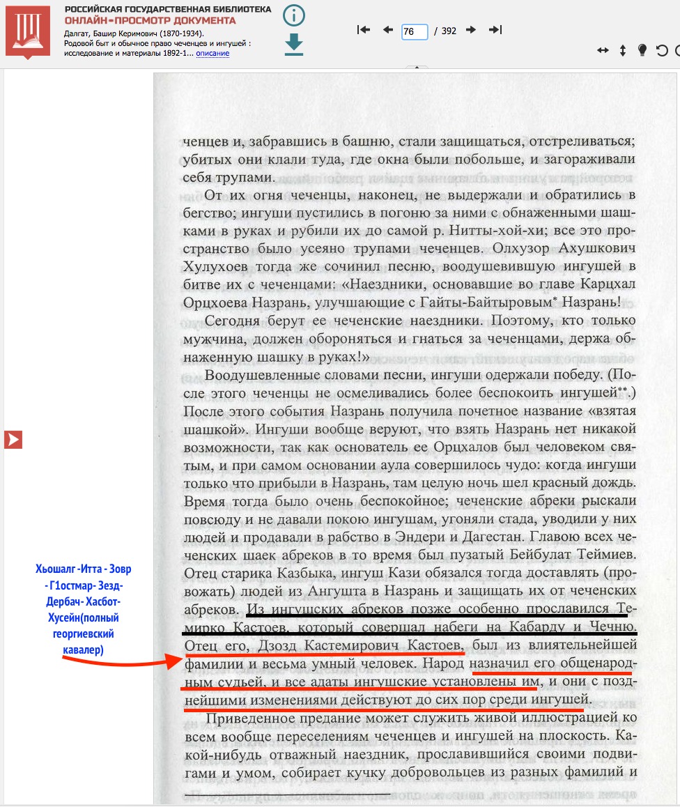 [Итого 62 двора]. Хутор Датых поселен с разрешения начальства с 1875 года. [Население его составляют] горцы Хамхинского и Цоринского обществ, которые принадлежат к числу 300 дворов, арендующих войсковую землю.