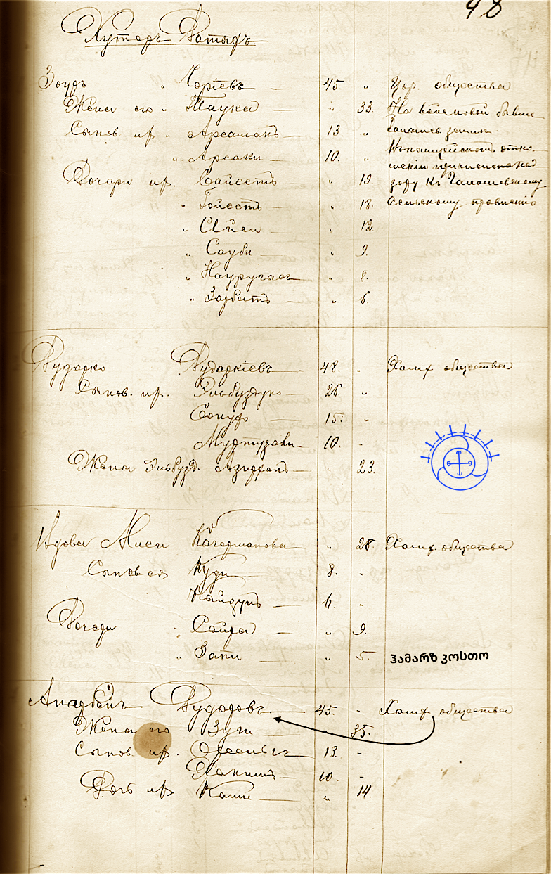 Костоевы в списке жителей поселения Датых от 20 июня 1893 года