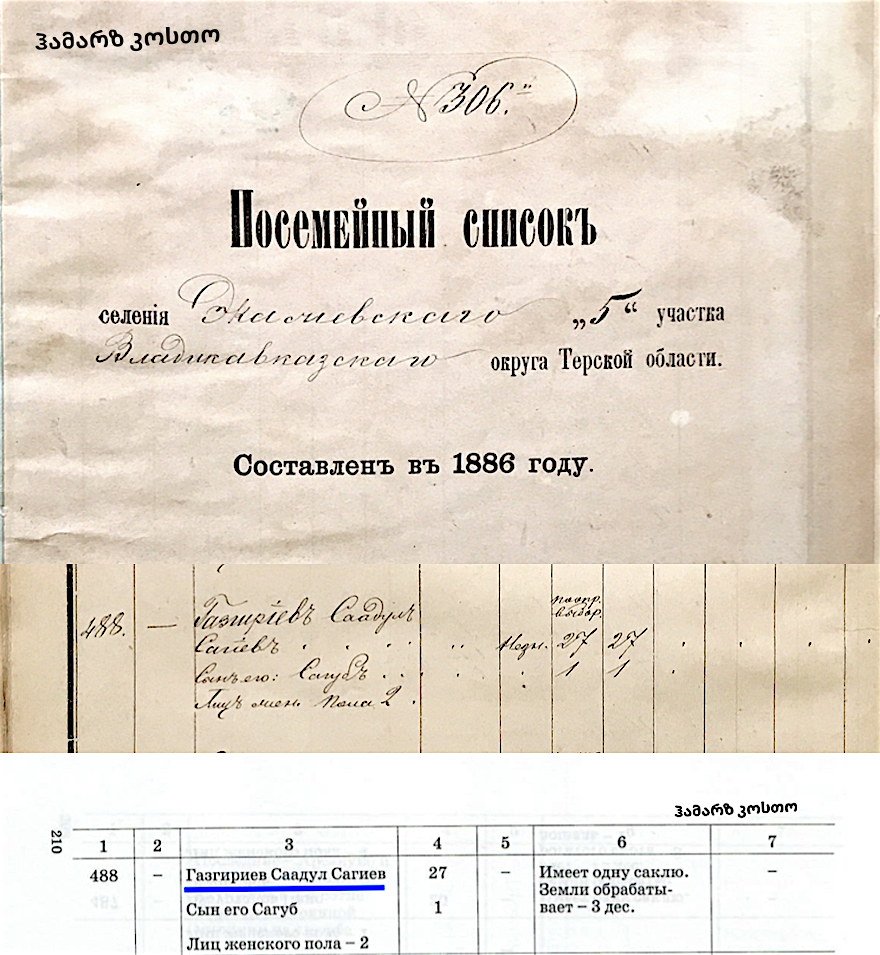 Из центрального гос. архива Грузинской ССР и ЦГА ф. 12. д. 1 л. 6995. VI. “Прошение 15 ингушских аулов” Начальнику ингушского округа полковнику Морозову от жителей Назрановского общества. (more…)