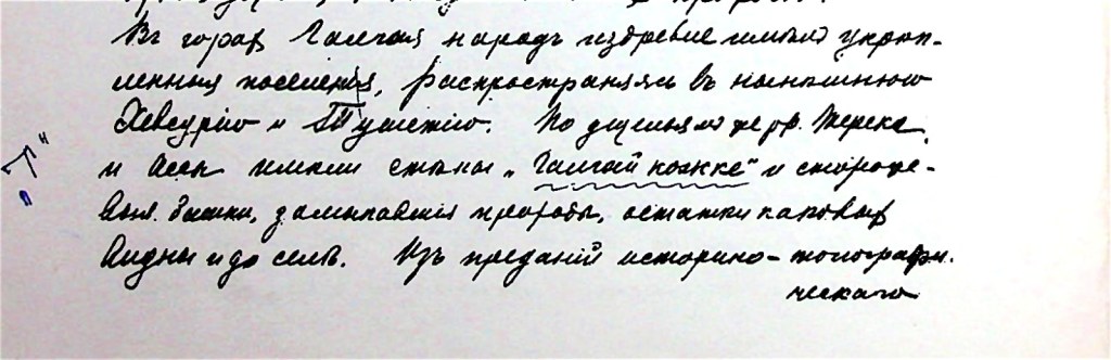 Les femmes des Mitzdje his portent une coiffure dont le haut a la forme d’une corne de chamois, mais qui est recourbee sur le devant. Cette corne est ordinairement d’e-corce de boulcan creuse, et couverte de drap ou d’etoffe de soie; elle a pres de deux ponces de larqeur et sept de hauteur: la pointe courbee est tournee vers le front; elle a pour base une petite guirlande, large de quelques doits, qui pose sur le sommet de la tete, et qui est garnie de coaril: cette coiffure s’appelle tchougoul» (Klaproth, „Voyage au mont Caucase et en Georgie». Paris. MD CCCXXIII. T. II, 247).