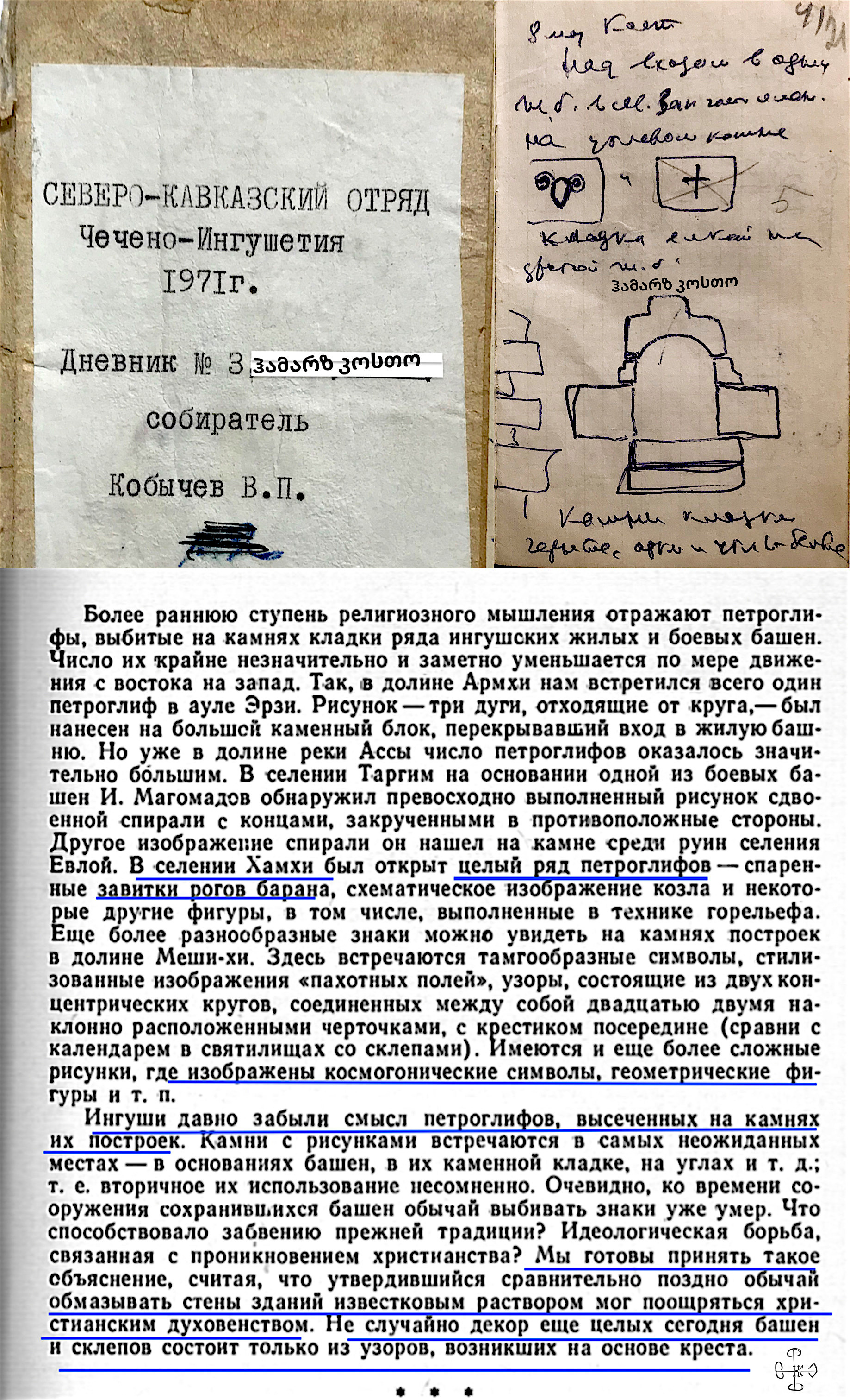 О петроглифах селения Кост (Къоаст) // Из дневника профессора Кобычева Вениамина (1971 год)