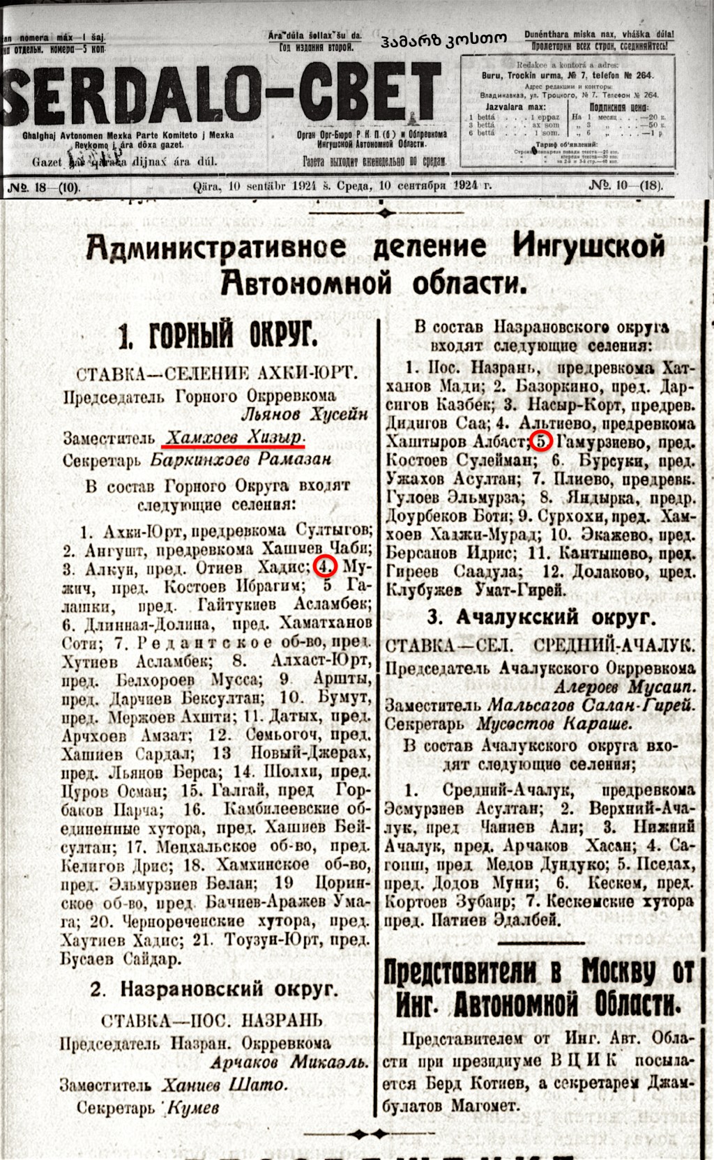 Костоевы Ибрагим и Сулейман в становлении ингушской государственности // «SERDALO», 10 сентября 1924 год
